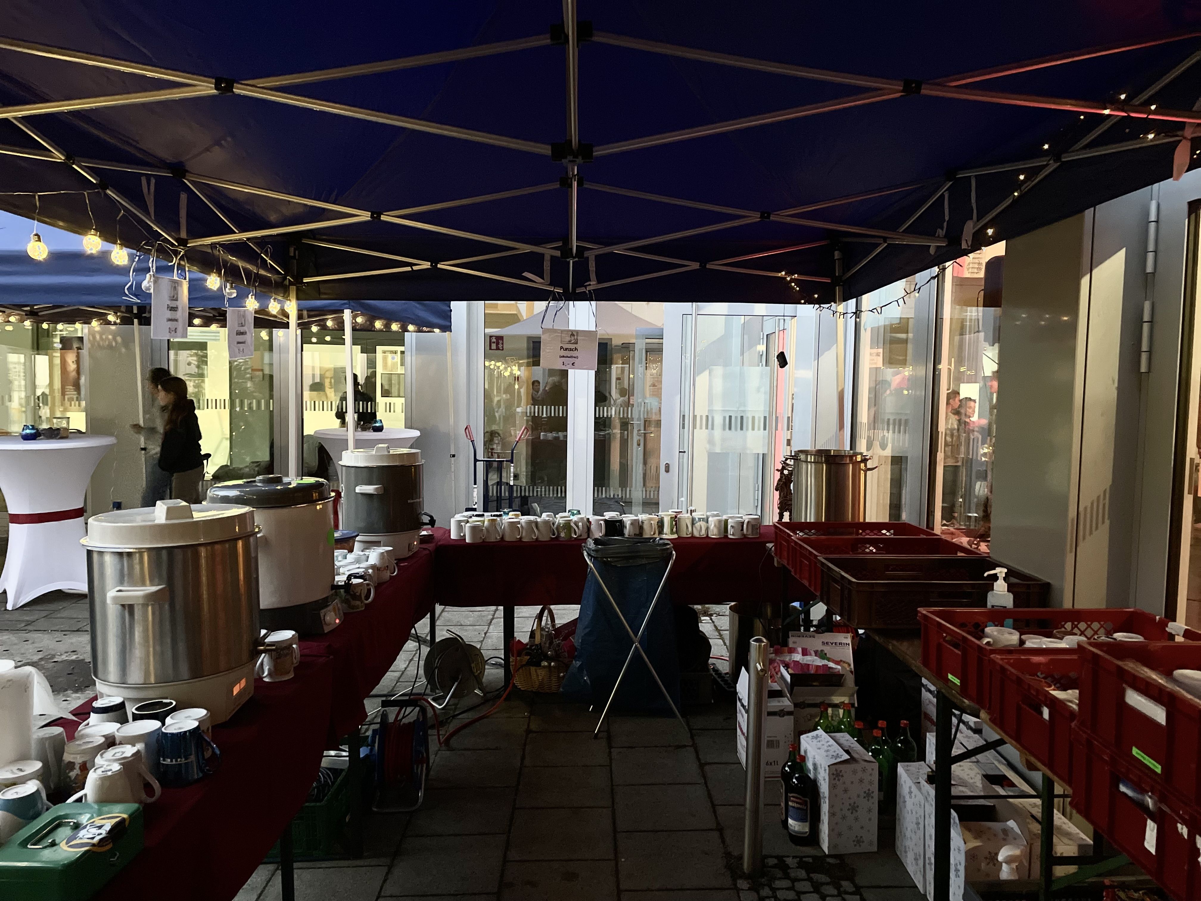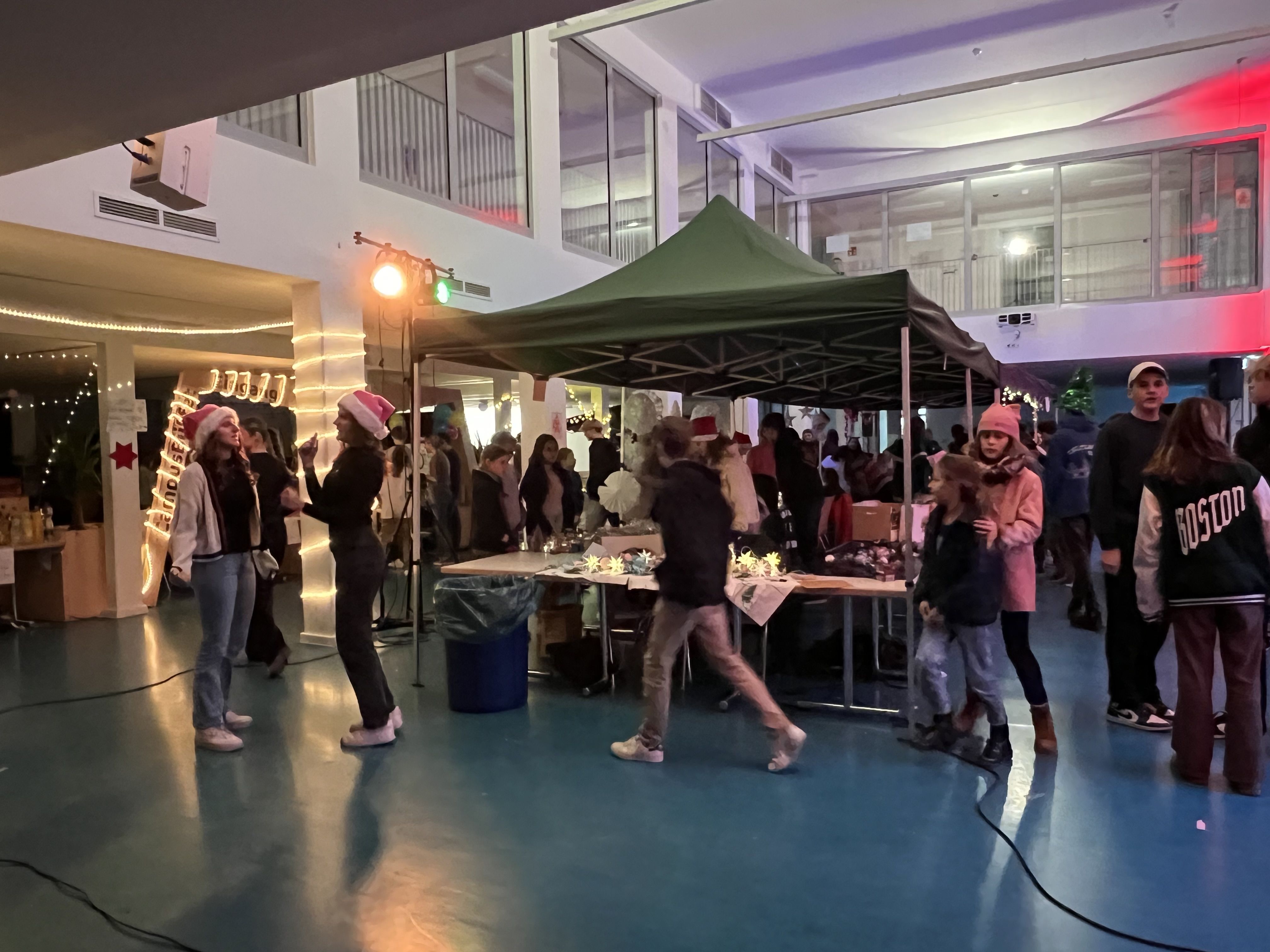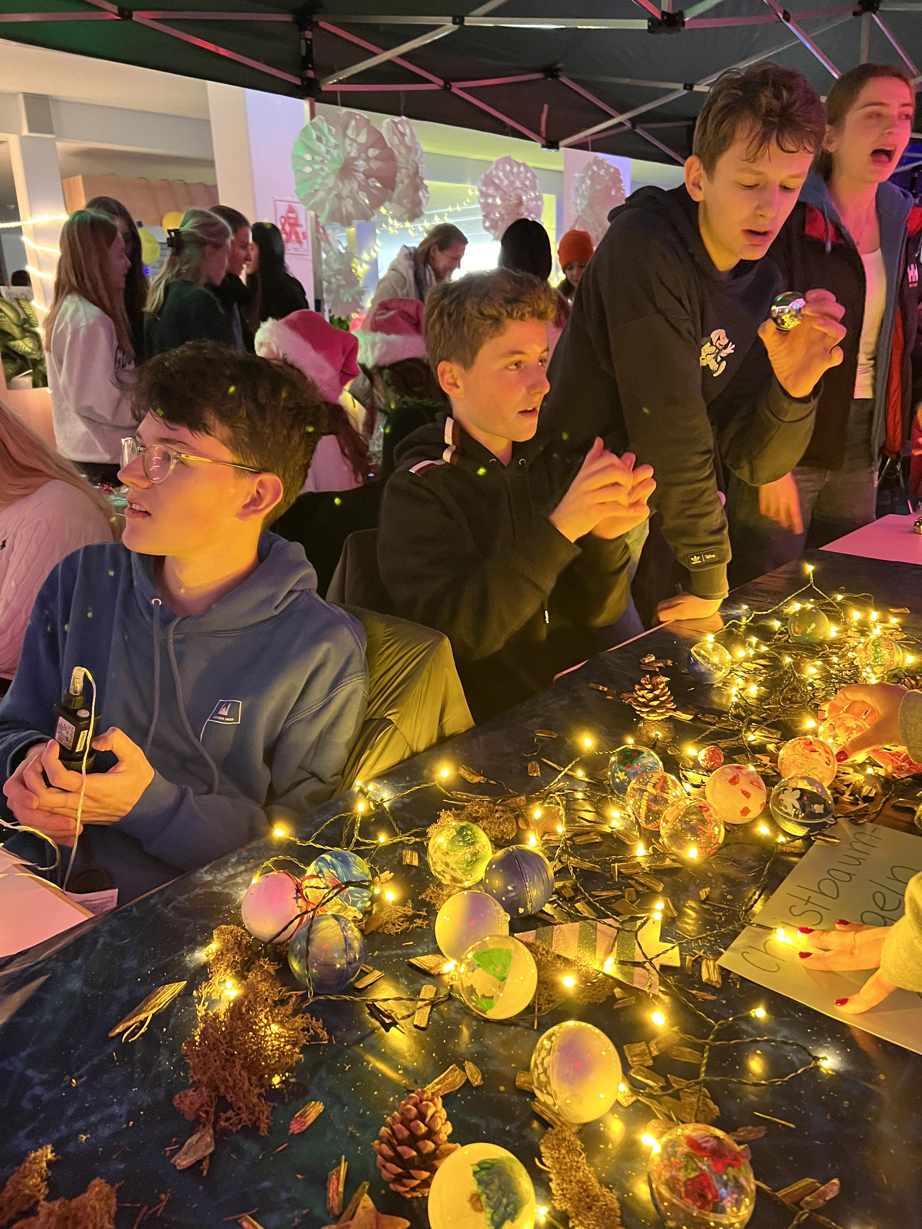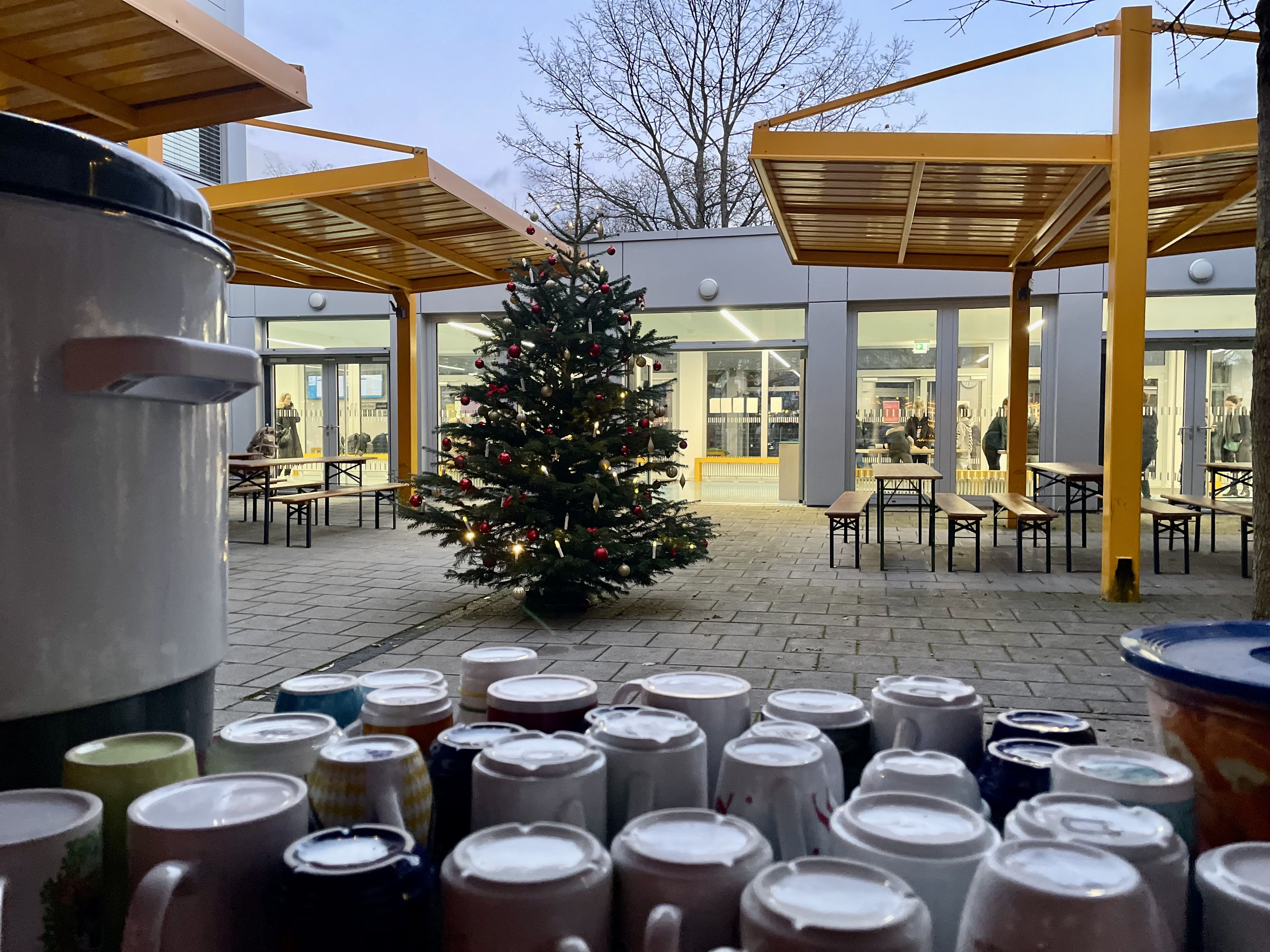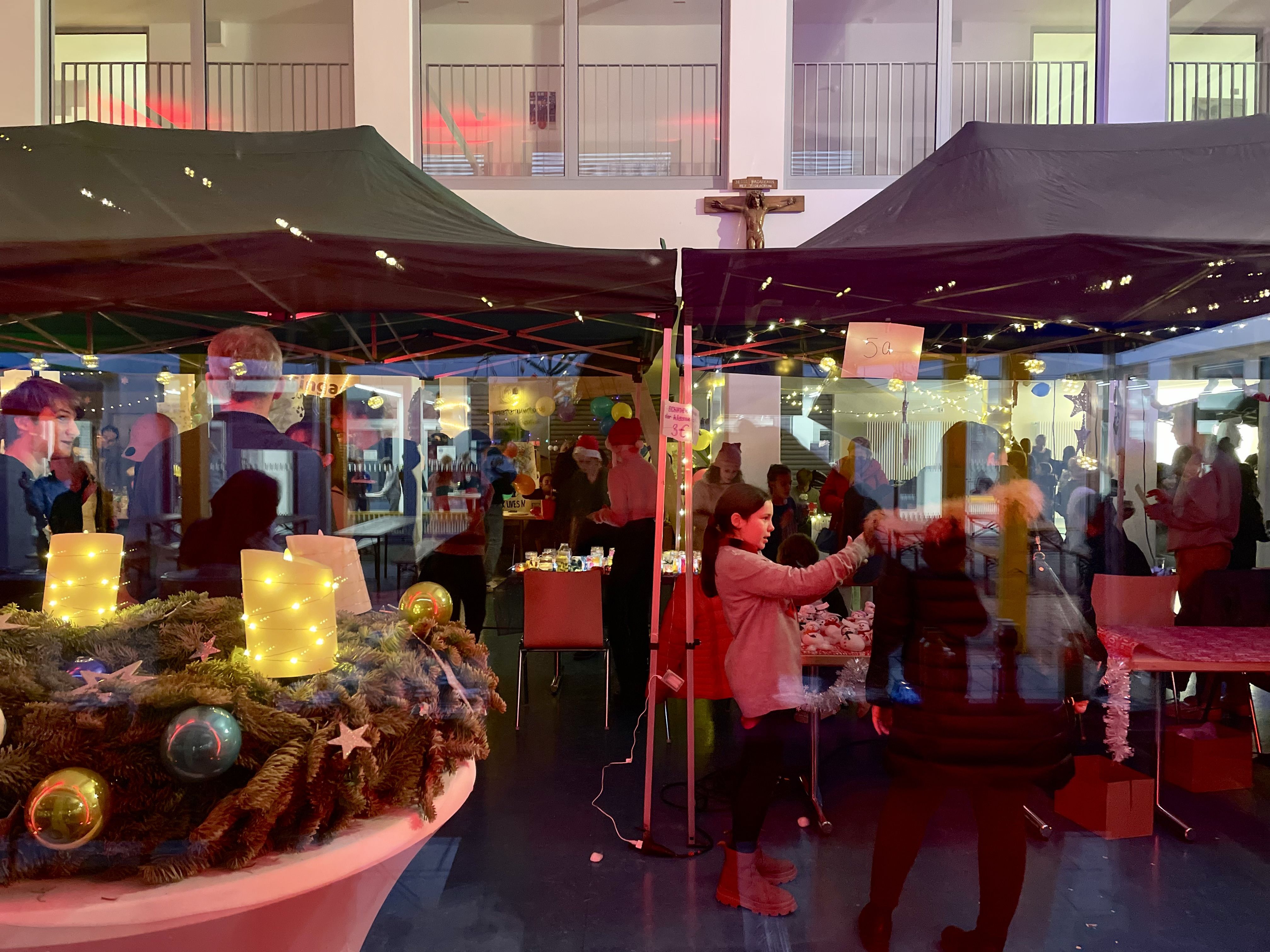 Auf unserem wunderschönen, liebevoll dekorierten und von engagierten Schülern ausgerichteten Adventsbazar gab es Bastelarbeiten der 5. + 6. Klassen und ihrer Tutoren, selbstgemachte Seifen des P-Seminars, eine Foto-Box mit rotem Teppich, Zuckerwatte, Crépes, Chilli sin Carne, Sport- und Oskarklamotten, Life Musik und vieles mehr - und natürlich den Glühwein/Punsch und Würstel Stand des Elternbeirates.