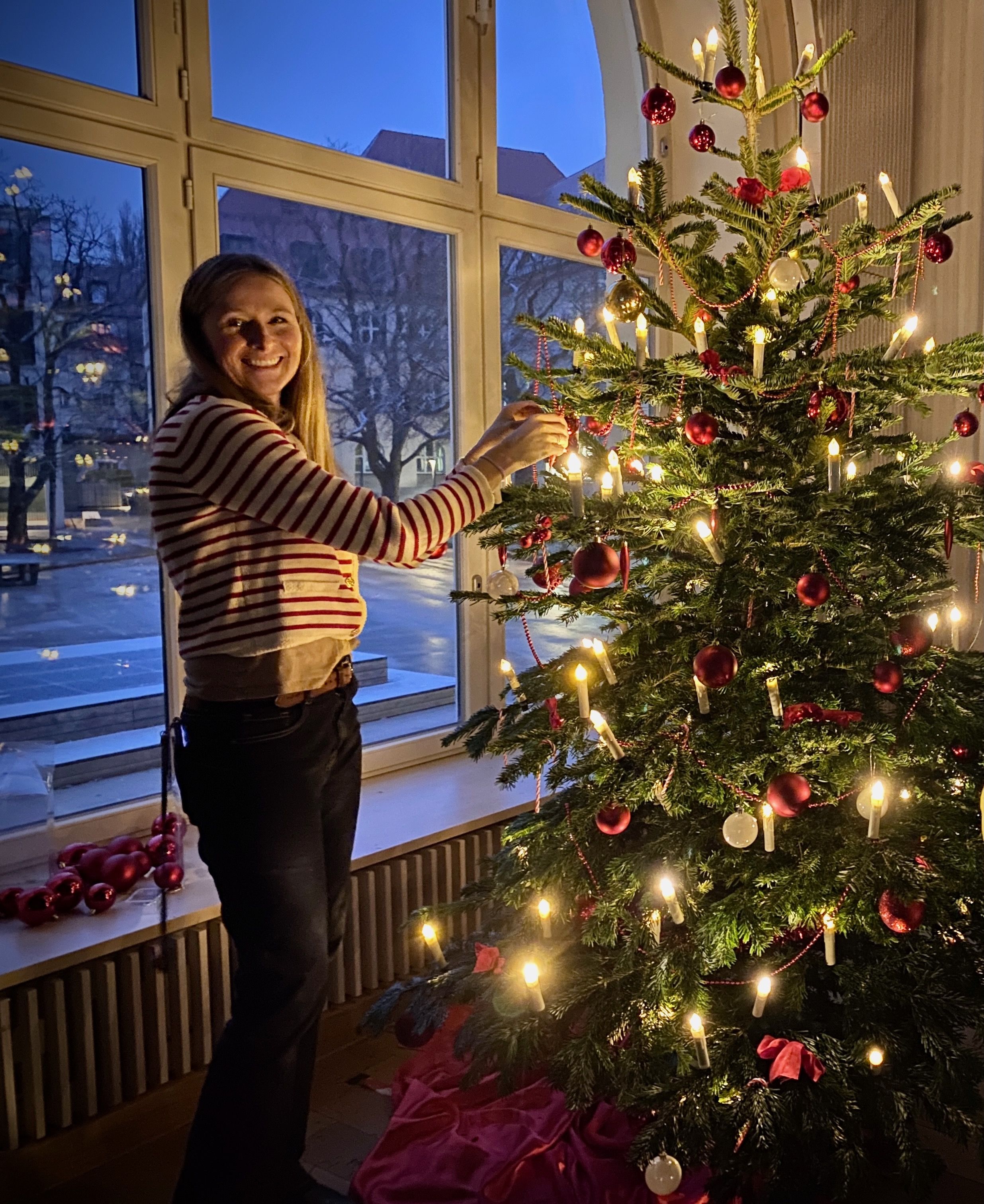 Während aus dem Lautsprecher eine Playlist mit Weihnachtsklassikern lief (und wir gelegentlich mitsummten), füllte sich der Baum Stück für Stück. Es wurde gelacht, gehängt, gerückt, ein bisschen diskutiert („Glitzer links oder rechts?“) – und am Ende sah der Baum einfach toll aus.
