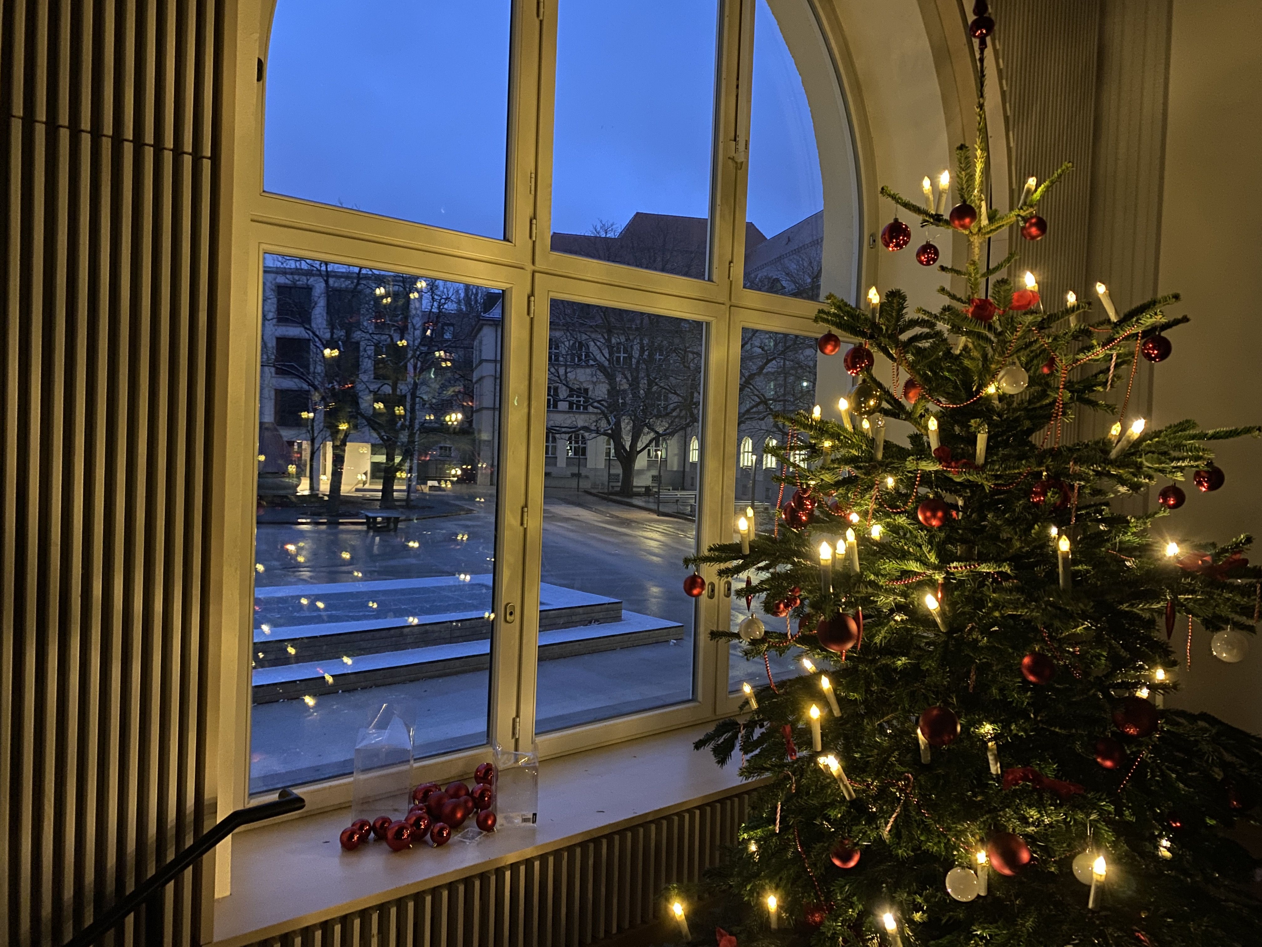 Der Baum selbst kam von der Schule, der Schmuck vom Elternbeirat – und die gute Laune von ganz allein. Sechs EB-Mitglieder und drei hochmotivierte Nachwuchs-Deko-Expertinnen machten sich gemeinsam ans Werk. Lebkuchen in der einen Hand, Christbaumkugel in der anderen – so lässt es sich arbeiten!