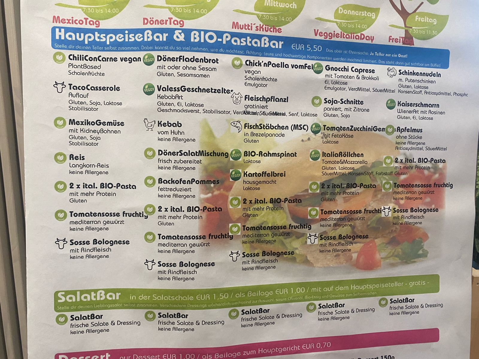 Wir haben drei unterschiedliche Gerichte probiert: Nudelbox, Sojaschnitzel und Salatteller. Unser Fazit: Das Essen war lecker und wir wurden alle satt – und wenn doch noch Hunger bleibt, ist ein kostenloser Nachschlag möglich. Insgesamt wirkt das Angebot ausgewogen, vielfältig und gesund (siehe Speiseplan).