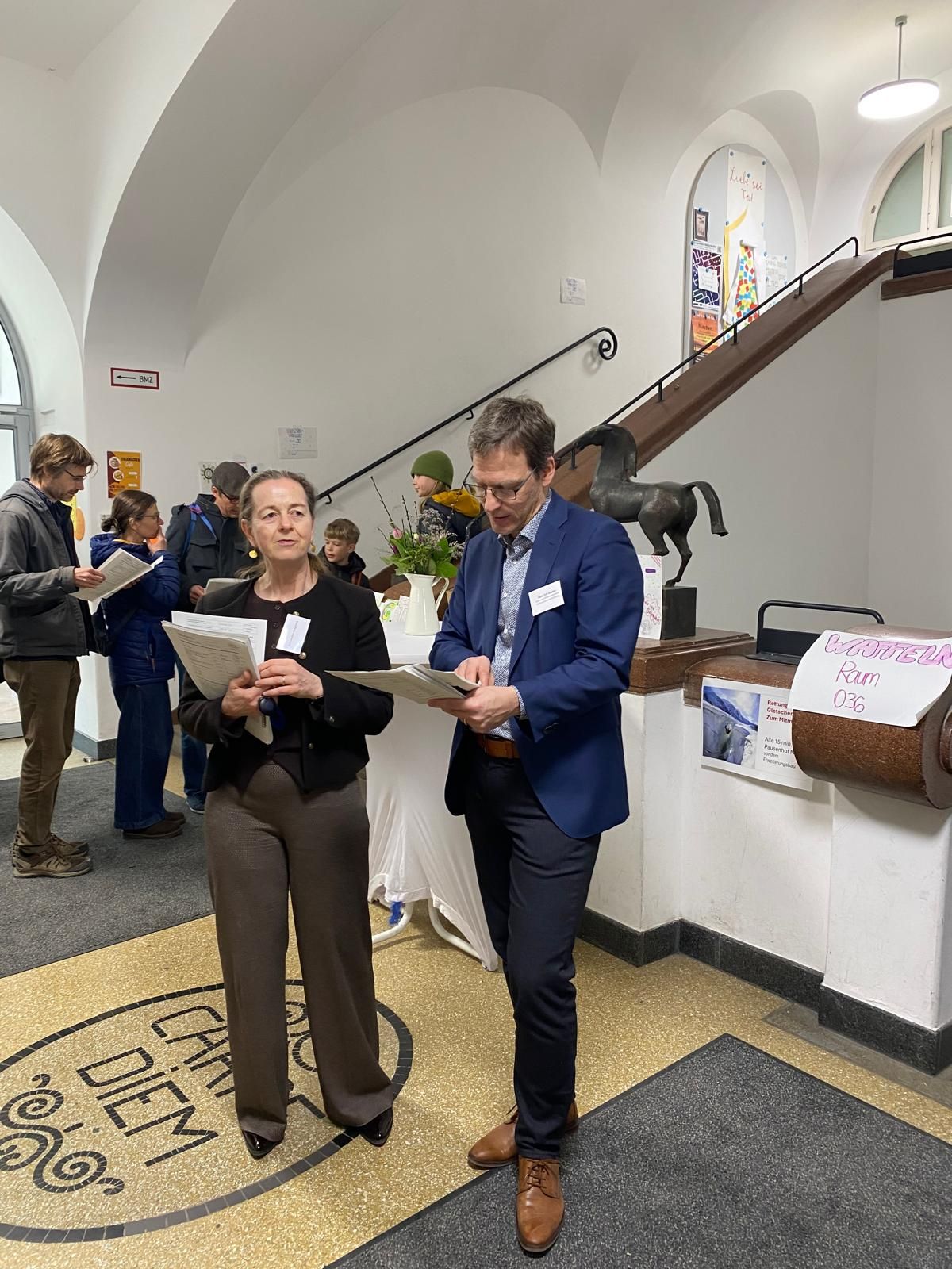 Auch rund um unseren Stand war die Stimmung durchweg positiv und geprägt von vielen Gesprächen mit interessierten Familien. Gleichzeitig bot sich immer wieder die Gelegenheit, selbst einen kurzen Blick in das vielfältige Angebot der Schule zu werfen und die besondere Atmosphäre dieses Tages zu genießen. Der Tag der offenen Tür zeigte einmal mehr, wie lebendig und engagiert die Schulgemeinschaft am OVMG zusammenarbeitet, um neuen Familien einen offenen und einladenden Einblick zu ermöglichen.