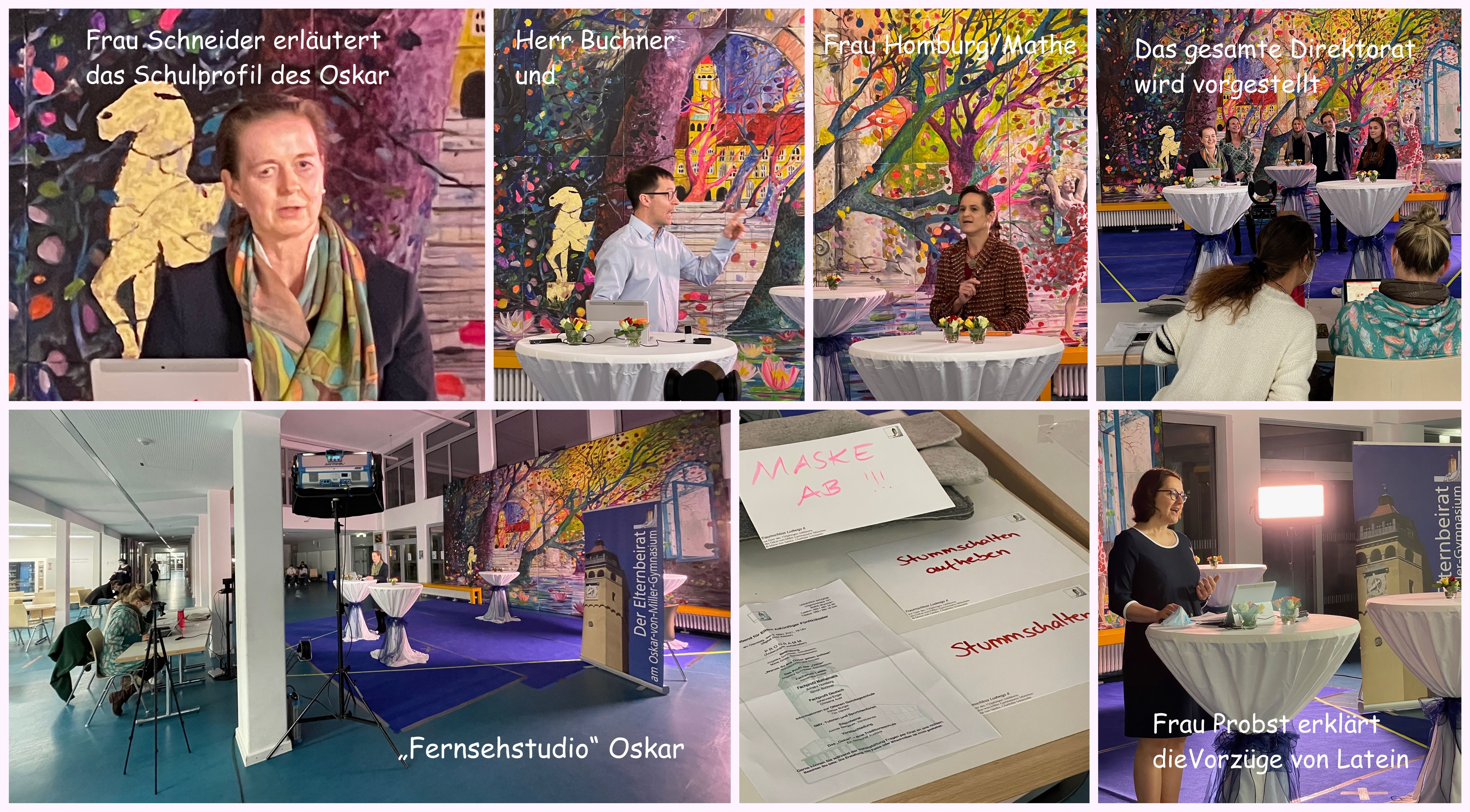 Diese Veranstaltung hat Tradition: Rund um den Halbjahres-Wechsel stellen sich die Münchner Gymnasien allen Familien vor, deren Kinder die vierte Grundschulklasse besuchen und nach einer geeigneten weiterführenden Schule suchen. Und schon das Publikum dieser Info-Abende, die Organisation und der Ablauf erzählen etwas über Profil und Stil der jeweiligen Schule. An manchen Gymnasien werden zum Beispiel ausdrücklich nur die Eltern eingeladen … oder nur knapp und nüchtern die wichtigsten Fakten vorgetragen. Am „Oskar“ dürfen und sollen natürlich Kinder und ihre Eltern kommen. Für die zukünftigen Gymnasiasten gibt es Schnupper-Unterricht (z. B. in Musik und Latein) – manche Kinder wollen danach gar nicht mehr in die Grundschule zurück. Mütter und Väter bekommen ein abwechslungsreiches Programm geboten … oh ja, der Sketch der Mathe-Lehrer:innen gilt schon als legendär.