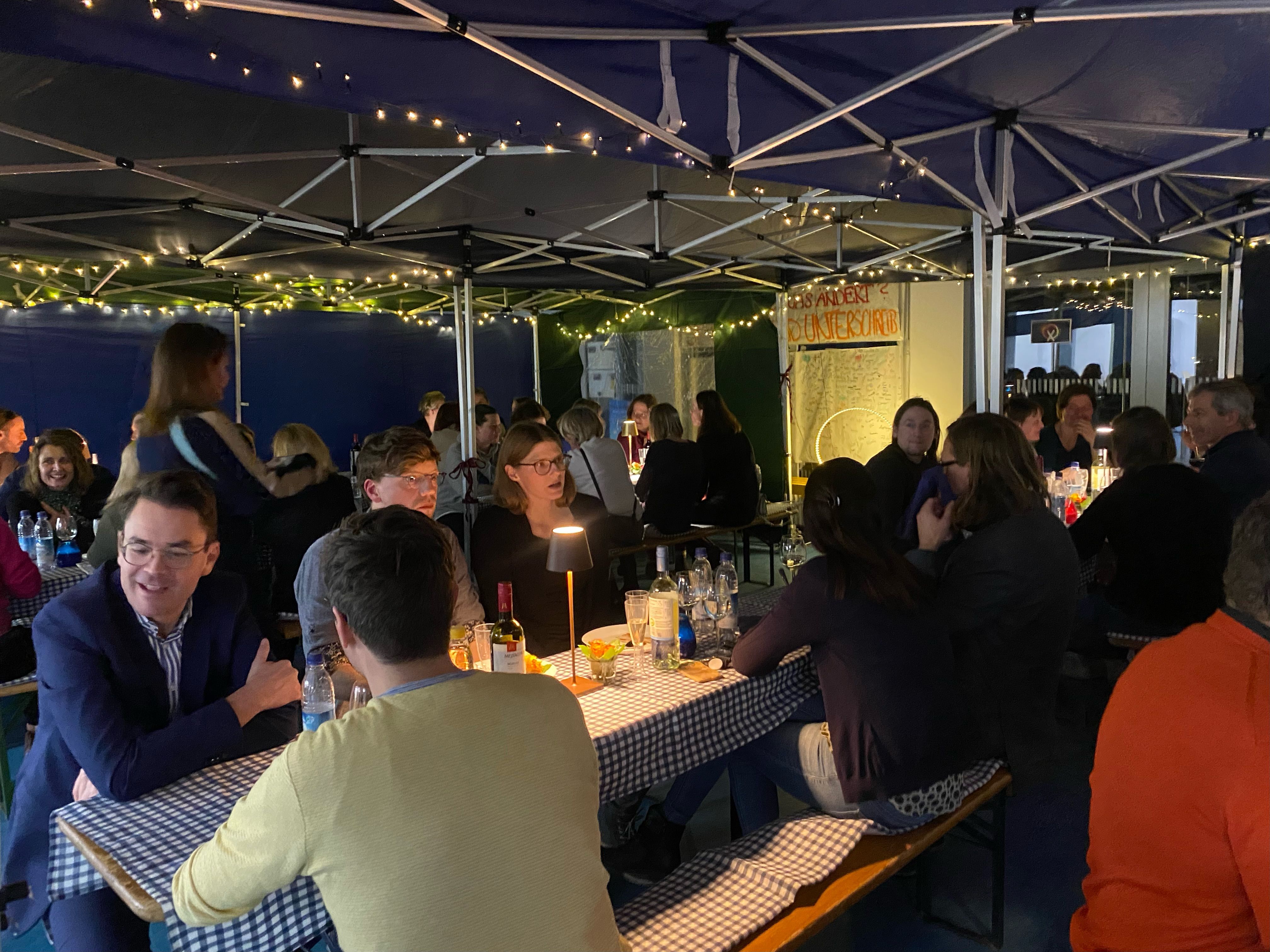 Lehrerinnen und Lehrer, Referendarinnen und Referendare, Mitarbeiterinnen und Mitarbeiter, Ehemalige und Assoziierte, Klassenelternsprecher:innen der 6. Klassen – und aktuelle und ehemalige Elternbeiratsmitglieder! – haben sich getroffen um gemeinsam zu essen, zu plaudern, zu trinken und zu lachen. Seit vielen Jahren schon wird diese Tradition gepflegt und ist eines der Highlights des Jahres.