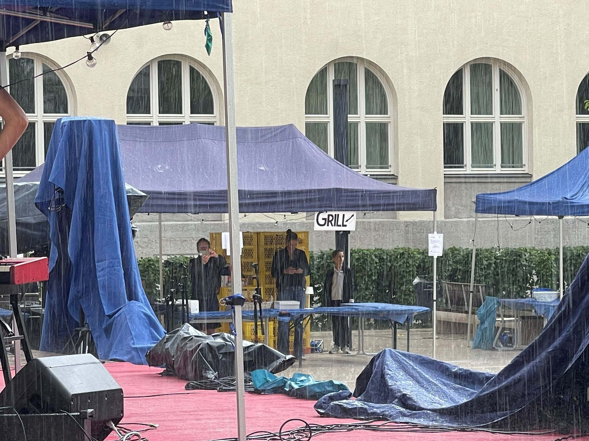 Und tatsächlich: Am Nachmittag hat es noch einmal ordentlich geschüttet, und kurz dachten wir, das Fest fällt buchstäblich ins Wasser. Doch gegen halb fünf klarte der Himmel auf – und der Abend wurde mild, freundlich und einfach perfekt. Der Wettergott hat’s also gut mit uns gemeint.