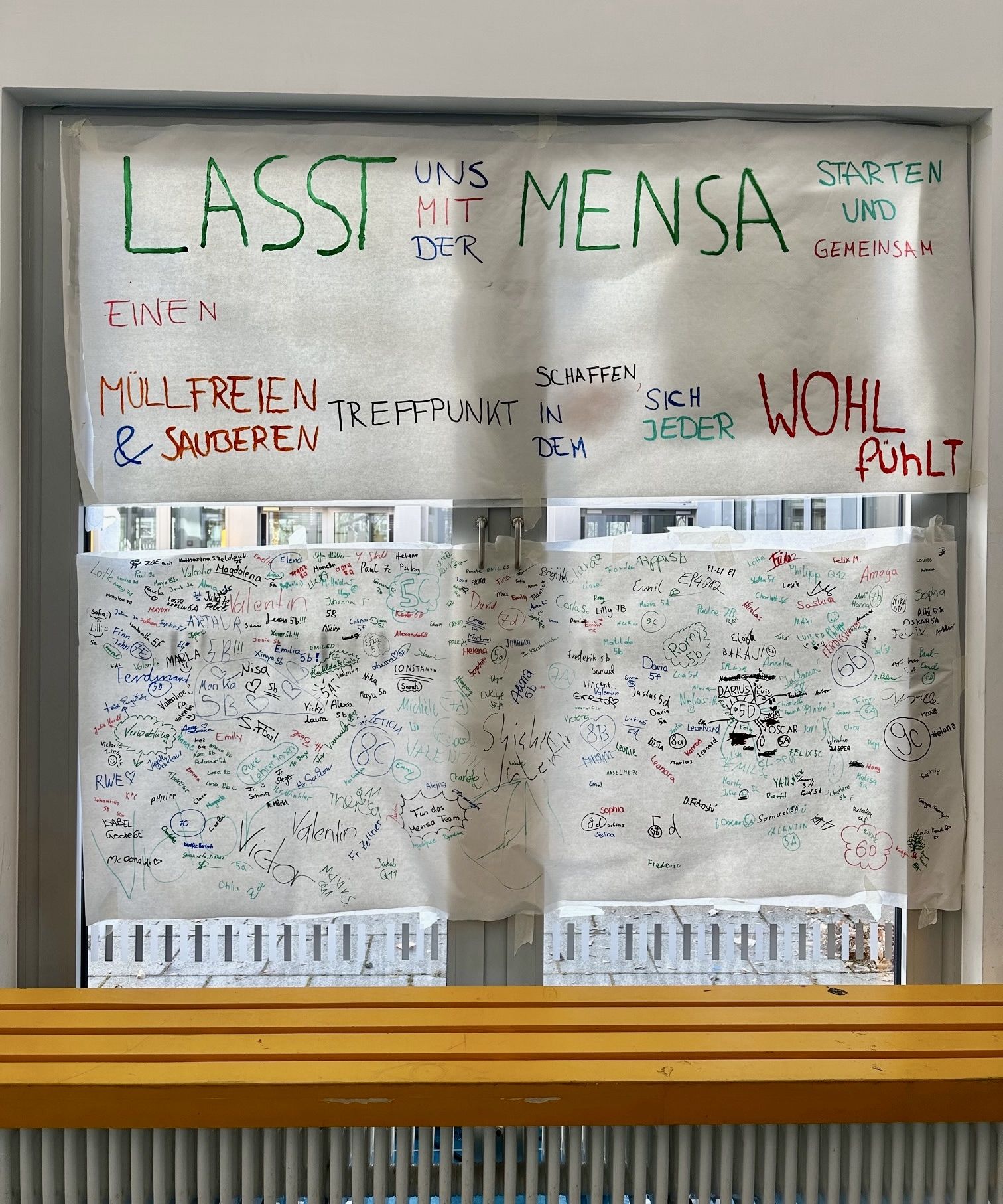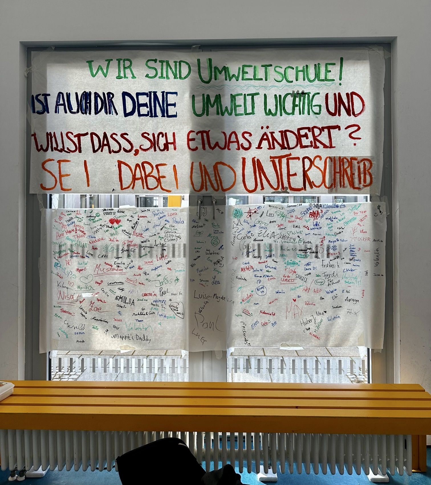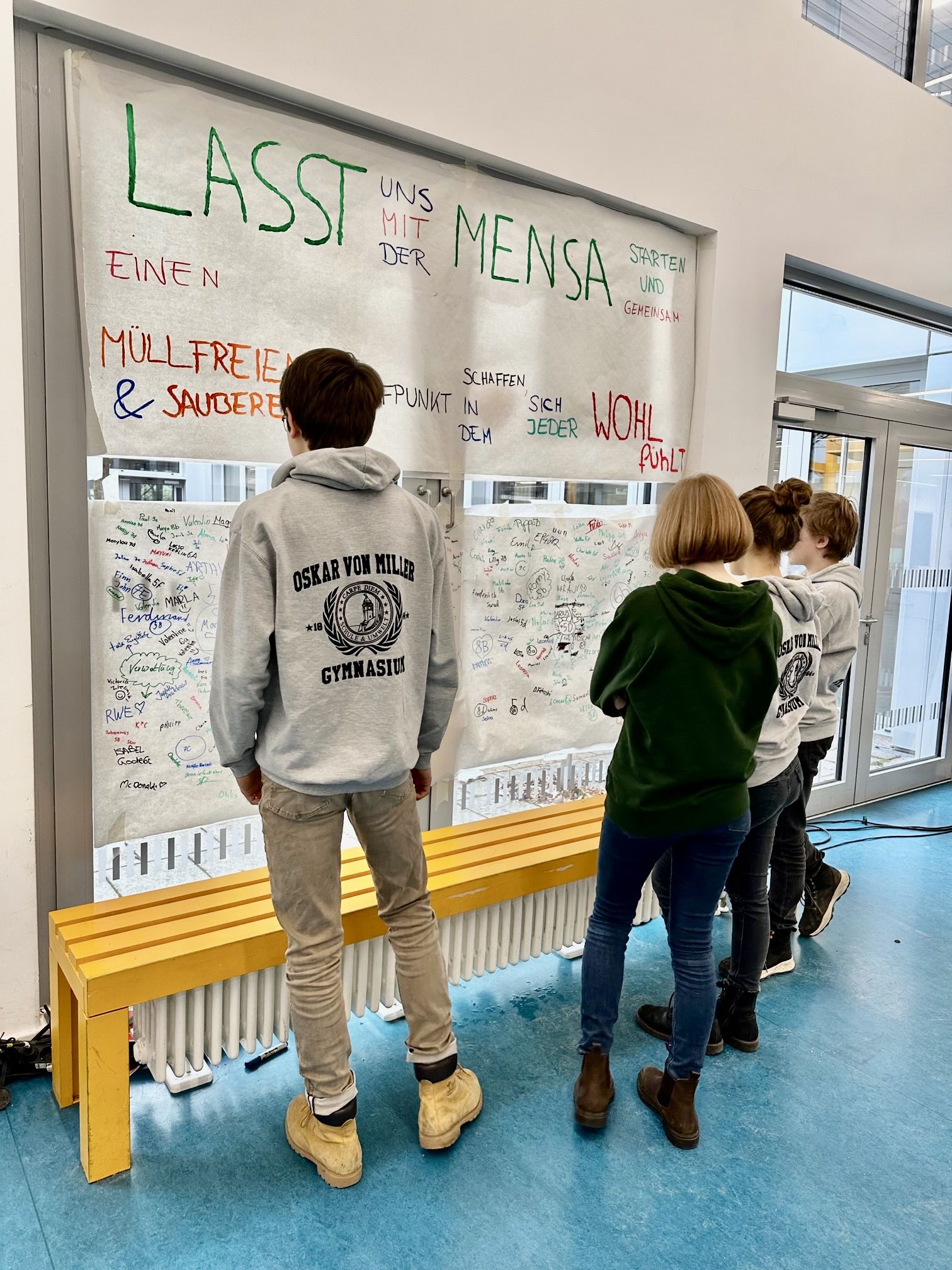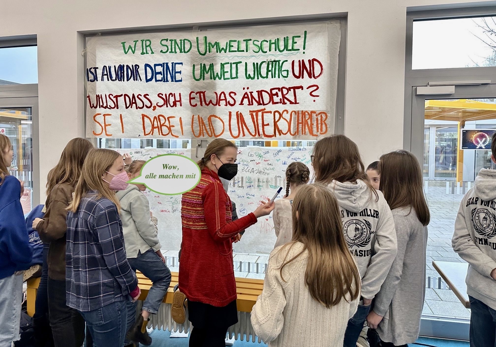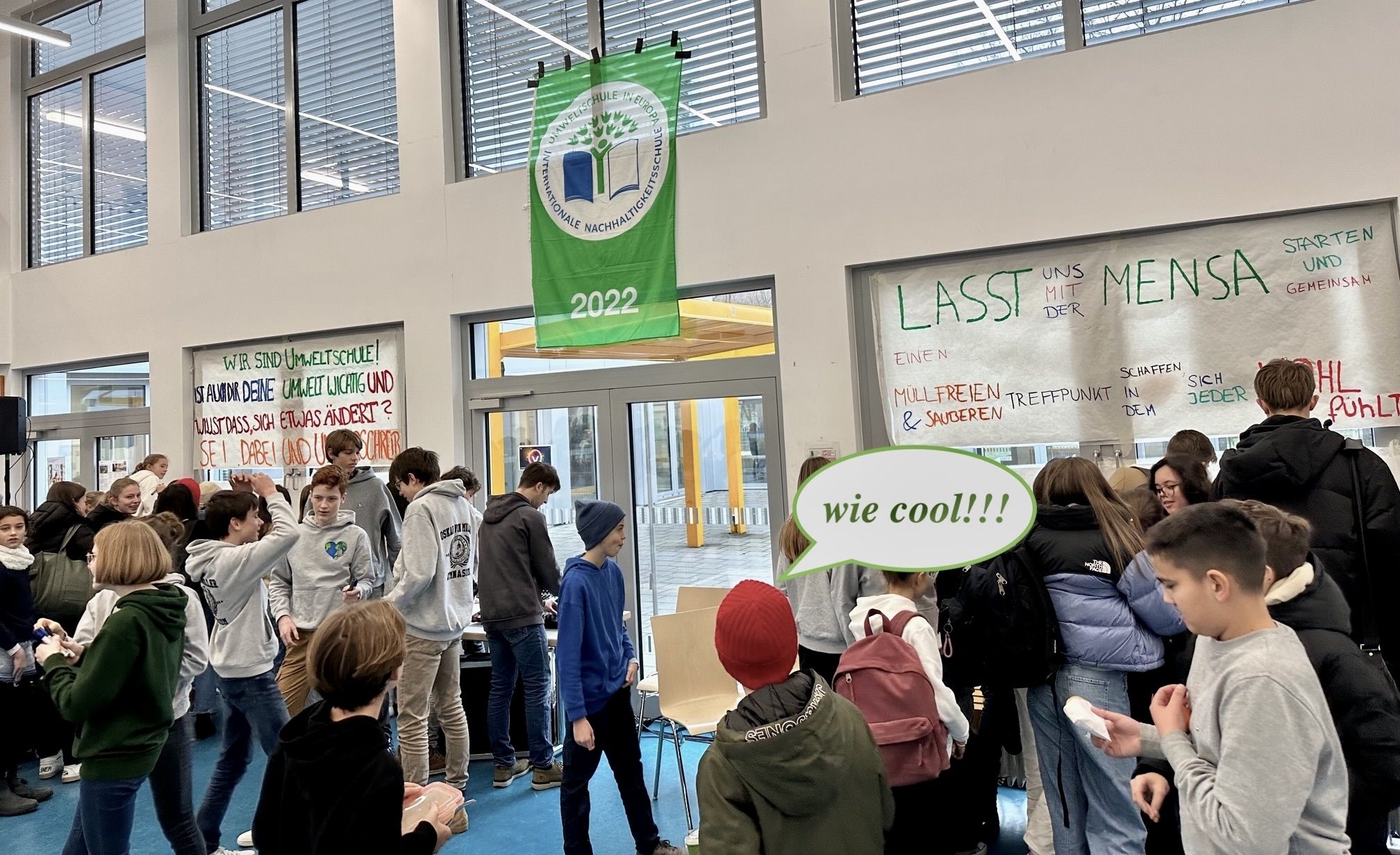 Hierzu gab es in der 2. Stunde eine motivierende Durchsage vom Wahlkurs Schule und Umwelt und die Klassen haben zwei Videos (eins von Schule und Umwelt mit der Info zu allen Umweltprojekten am Oskar und eins mit dem höchstselbstkomponierten Klimasong von Stefan Flierl) gesehen. Danach gab es in beiden Pausen Musik (Klimasongs verschiedener bekannter Musiker) und eine Impulsaktion in der Mensaula bei der alle Oskarianer mitmachen konnten. Alle waren mit Spaß dabei und es war eine sehr motivierende Atmosphäre.