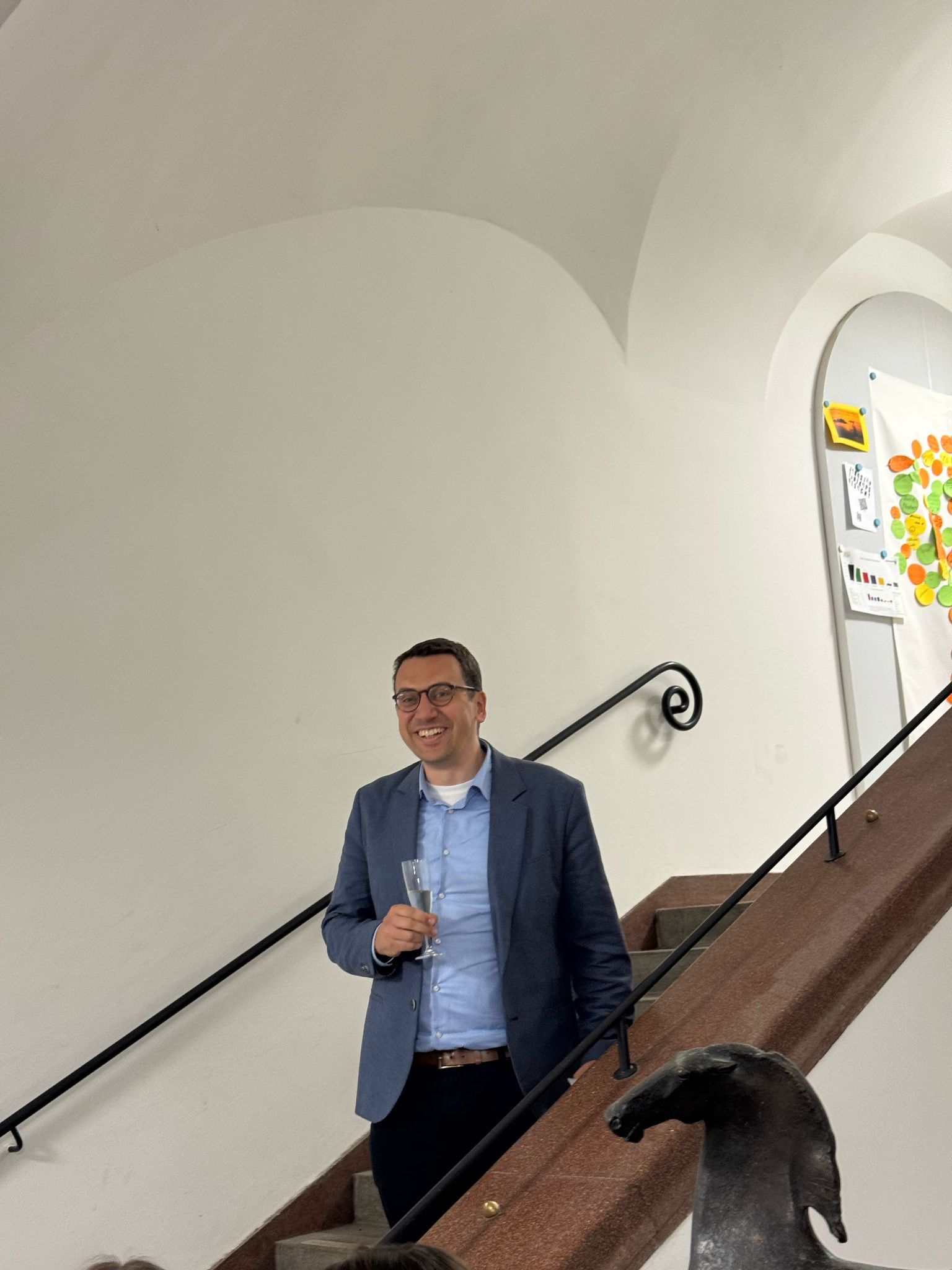 Unser Elternbeiratsmitglied Prof. Dr. Murad Alim hatte auch die Möglichkeit eine spontane Rede im Treppenhaus des Gymnasiums zu halten.